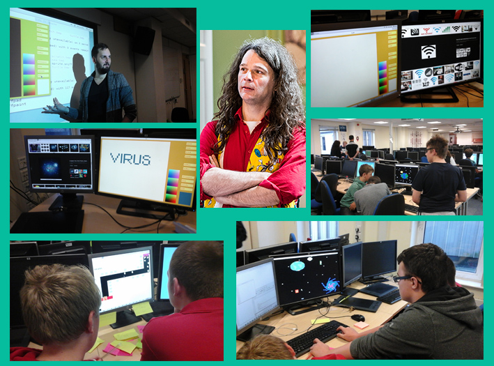 The game jam forms part of Phil’s on-going Doctorate Research looking at game production as educational and pedagogic practice. To create the games, IPACA students used ‘Sniff’, a programming language developed by Ian for budding coders. Click here for more detailed information of the work the students completed, the Sniff programming language and to play their games.